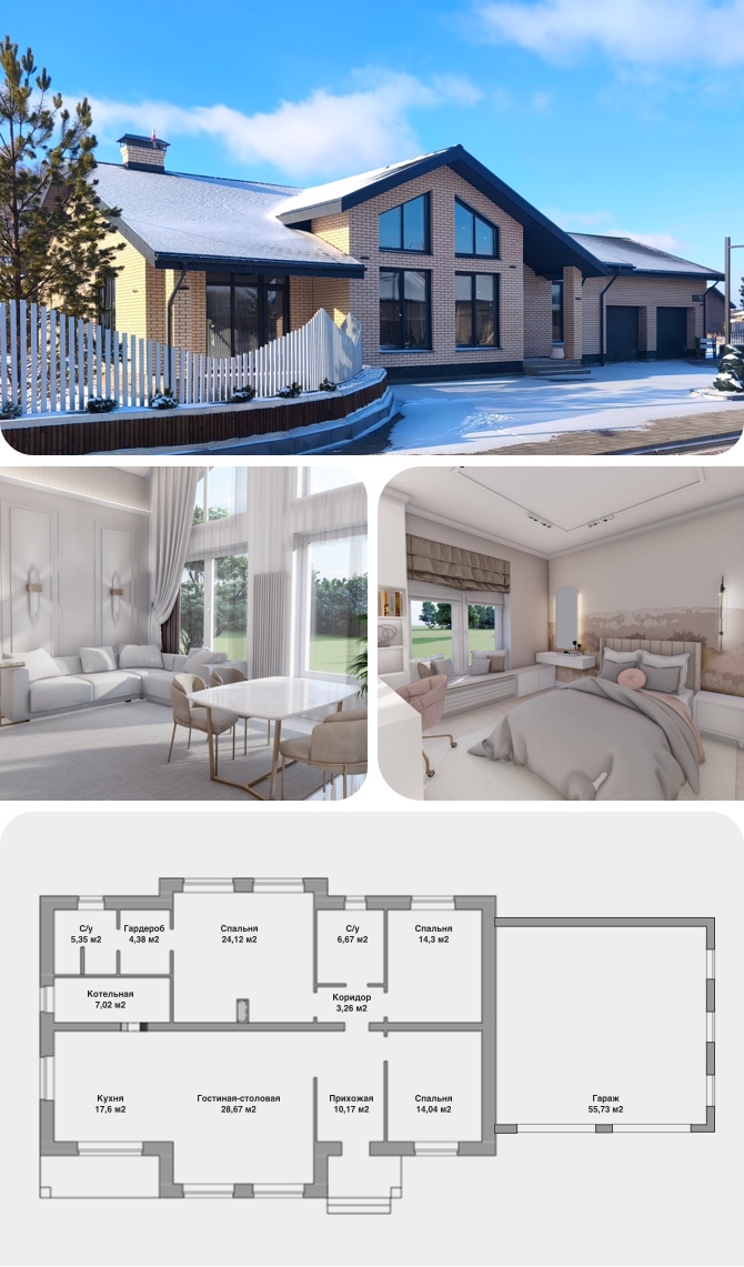 • Фасад дома: фасадная краска (возможна отделка кирпичом)